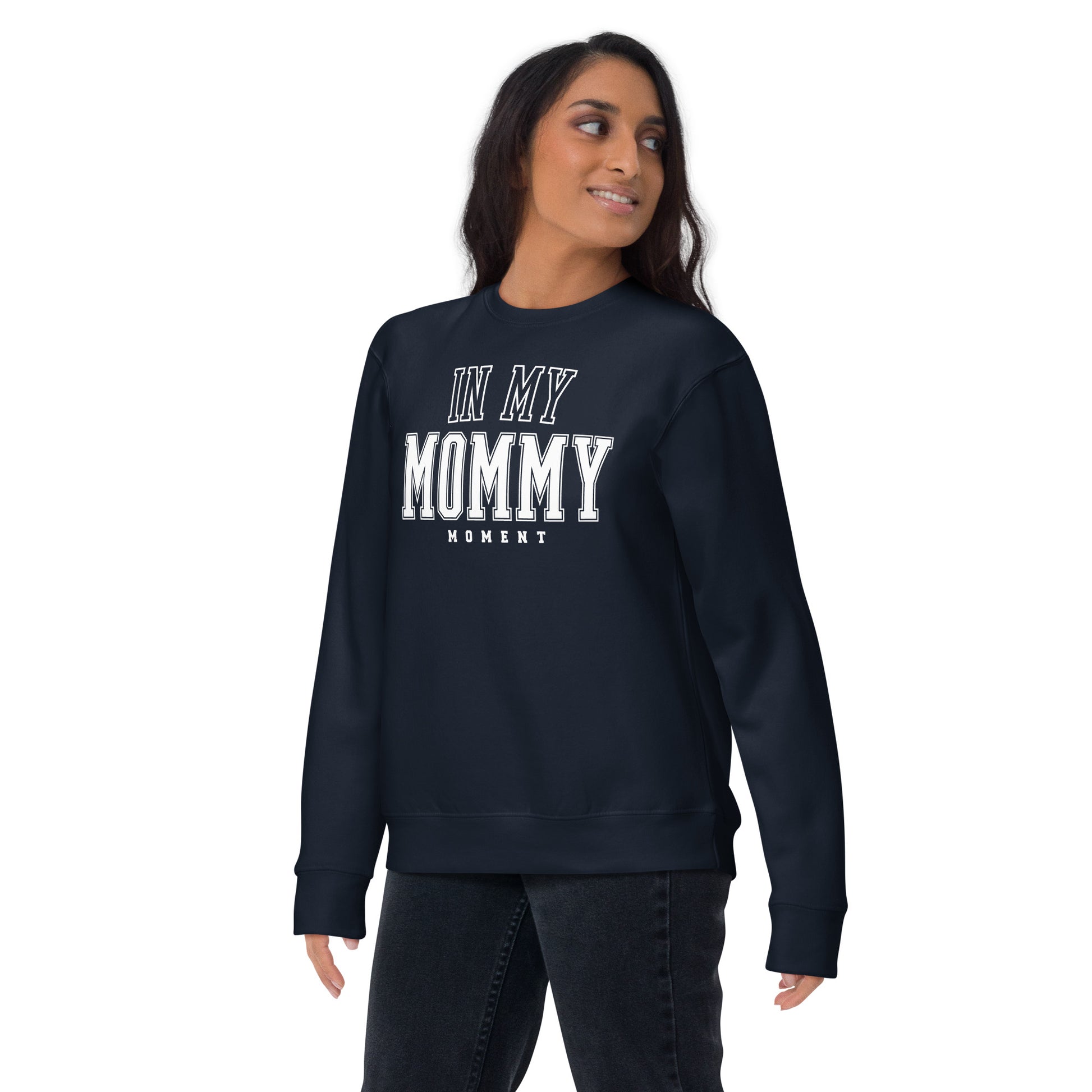 This cozy sweatshirt features βIn My Mommy Momentβ on the front and βThe season when they still say mommyβ on the back β a gentle reminder to soak in this fleeting, beautiful stage of life.